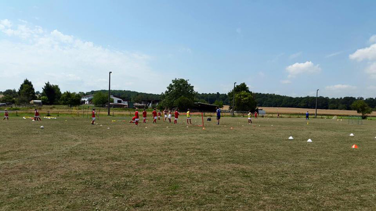 Am Freitag war der Start des Fußballcamps. Bei heißen 35 Grad schwitzten wir ohne Ende, zum Glück hatten wir vorgesorgt und Zelte, Eimer mit kaltem Wasser und Trinkwasser im Überfluss überall bereitgestellt! Zwischen den Trainingseinheiten wurden immer wieder kleine Pause eingelegt und sich abgekühlt.